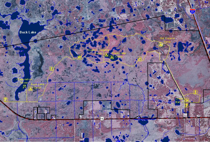 From I-95 exit 81 near Mims, go west on State Road 46 for about 0.75 miles. Blake Lee Trail, the access road for the eastern entrance, is on the right. If you continue west on State Road 46 for about six miles, the western entrance access is also on the right.