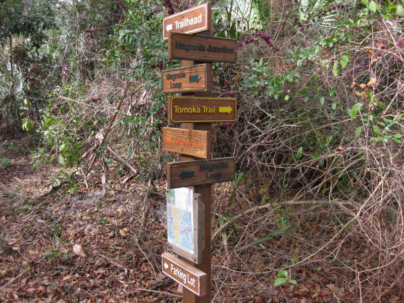 The 0.4 mile Tortoise Trail rounds out the list. It takes you back to the parking lot from Magnolia Junction, which is where the Magnolia Loop starts and ends. There's quite an impressive number of trail sign at this junction. I guess they want to make sure you don't get lost.