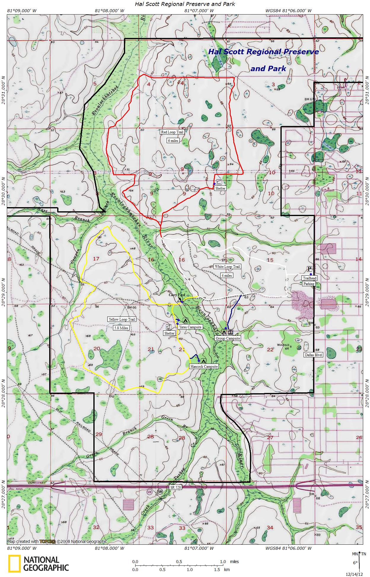 From I-95 exit 75 near Cocoa, head west on SR 520 until you get to the Wedgefield subdivision which is about 17 miles. Turn left on Maxim Parkway and follow road until it ends. Turn left on Bancroft Blvd and then take the next right turn which is Meredith Parkway. Follow road until it meets Dallas Blvd. Turn left and drive for about 1.6 miles. Entrance to park will be on your right.